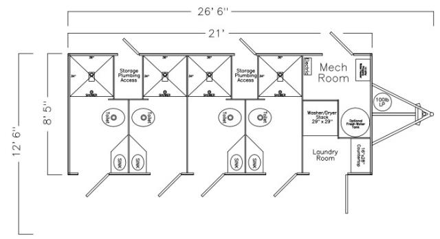 * Please call us with questions about our 4 station shower and restroom trailer with laundry rentals, serving Fresno CA, Clovis, and the Central Valley of California.