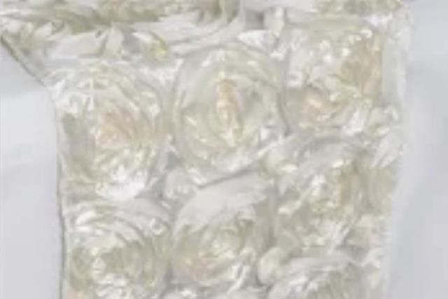 * Please call us with questions about our 12 inch x 108 inch rosette ivory runner rentals, serving Fresno CA, Clovis, and the Central Valley of California.